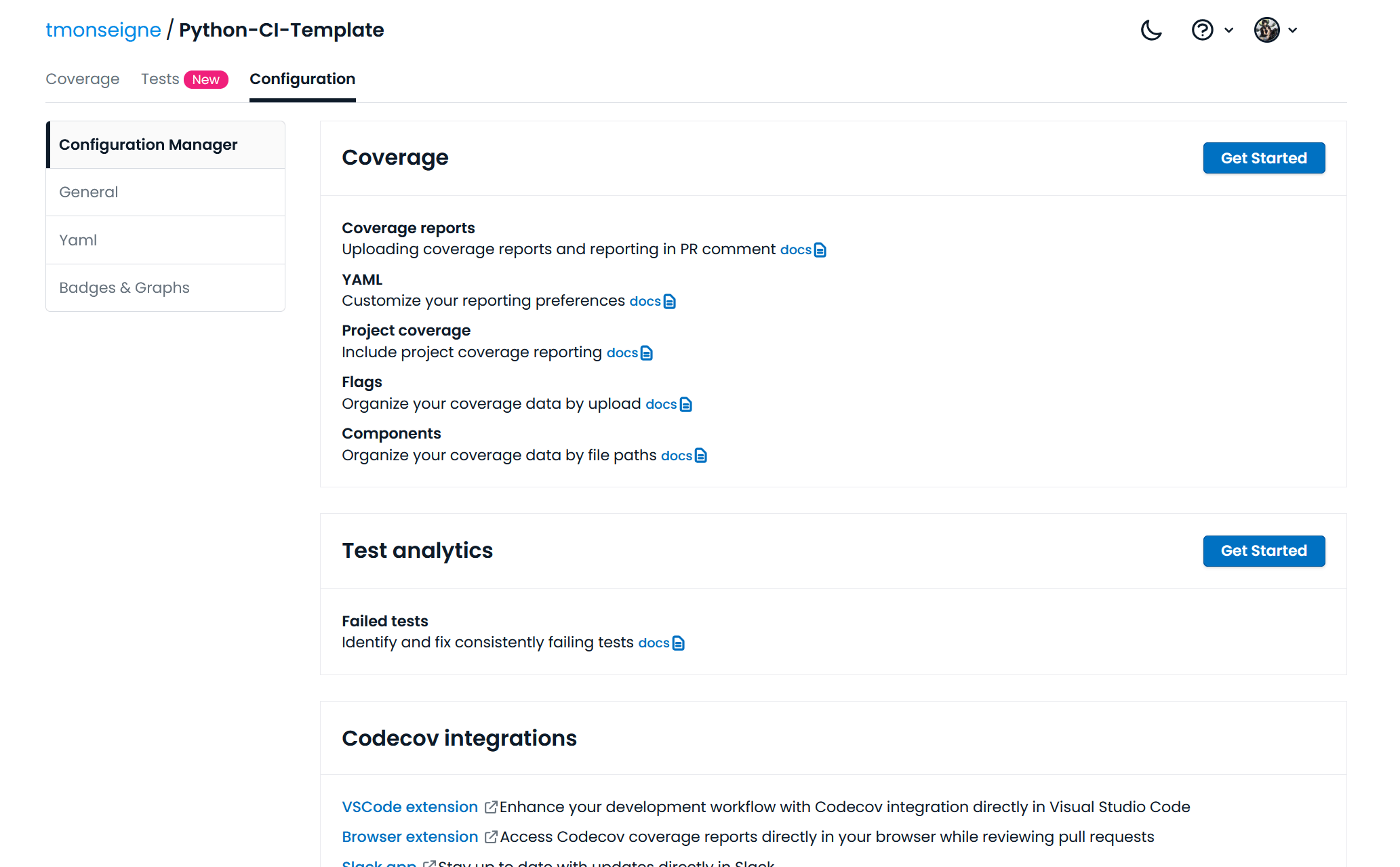 Depending on the options, pytest plugins may be necessary (e.g., pytest-cov) and must be added to the project configuration file.