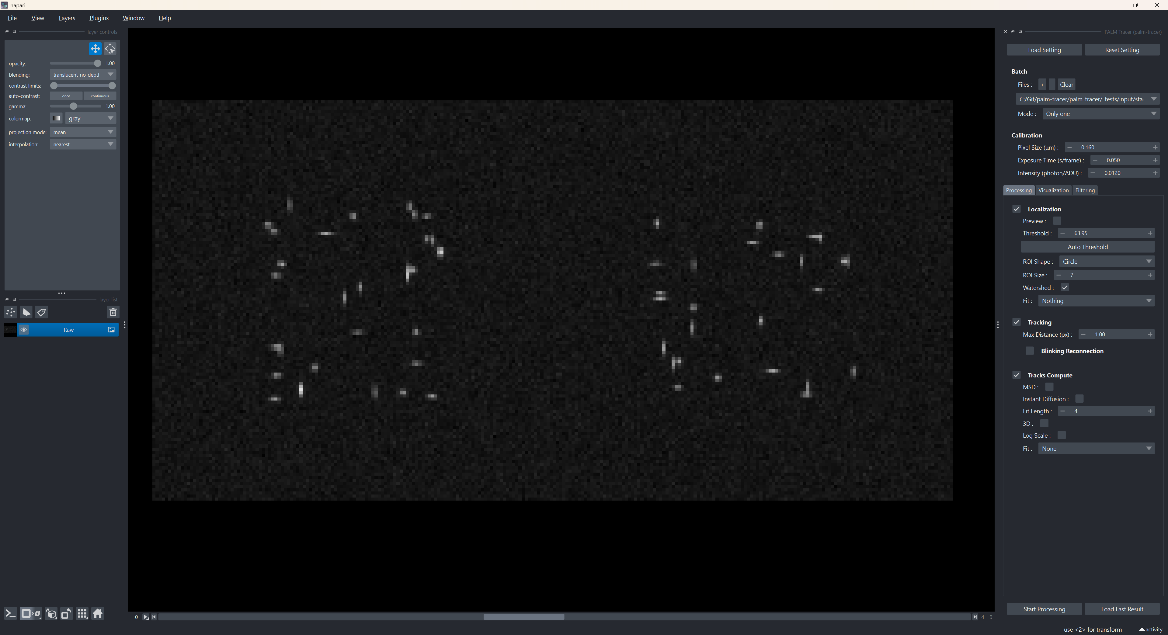 It is also possible to launch Napari directly with the plugin using the command: napari -w palm-tracer