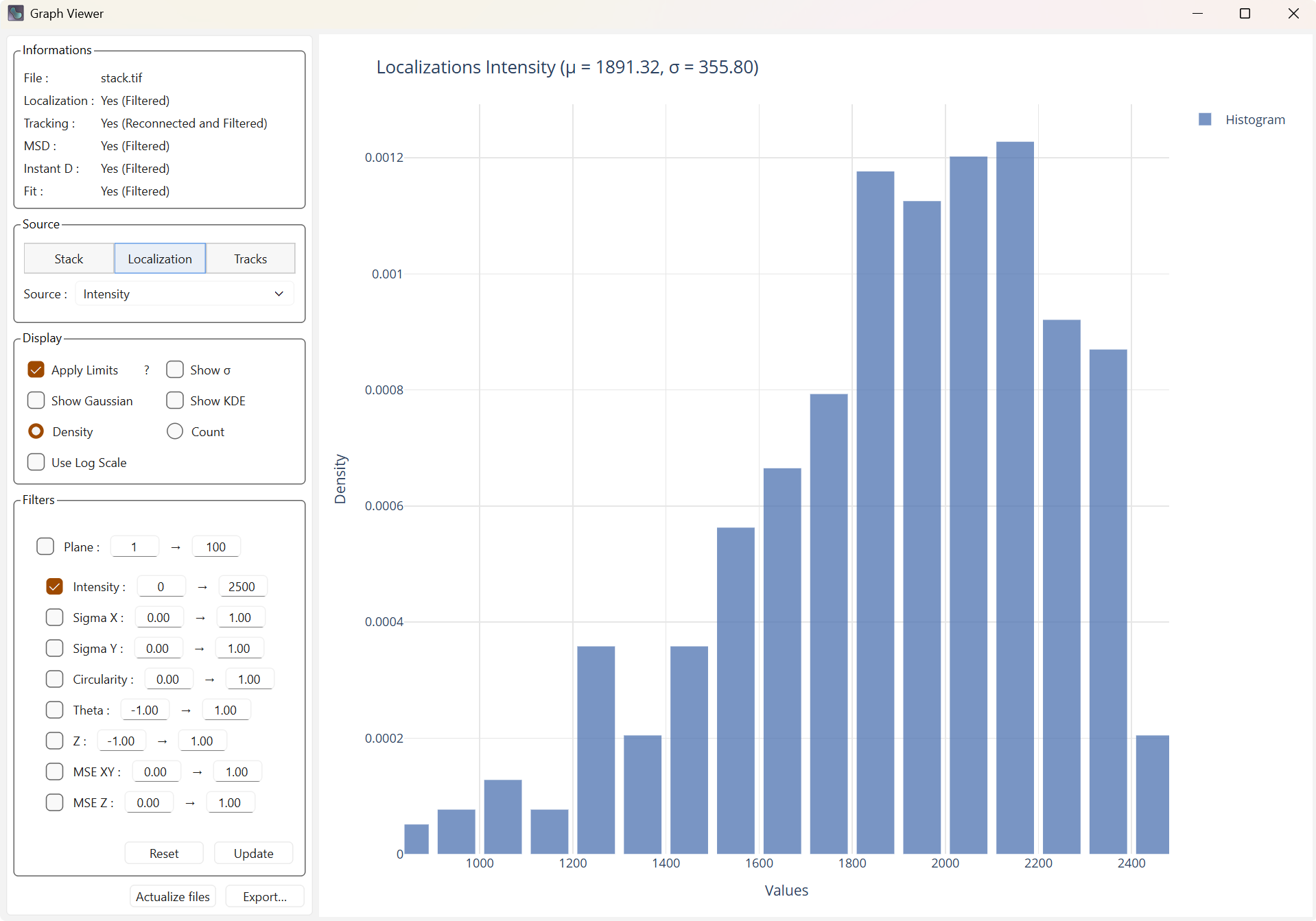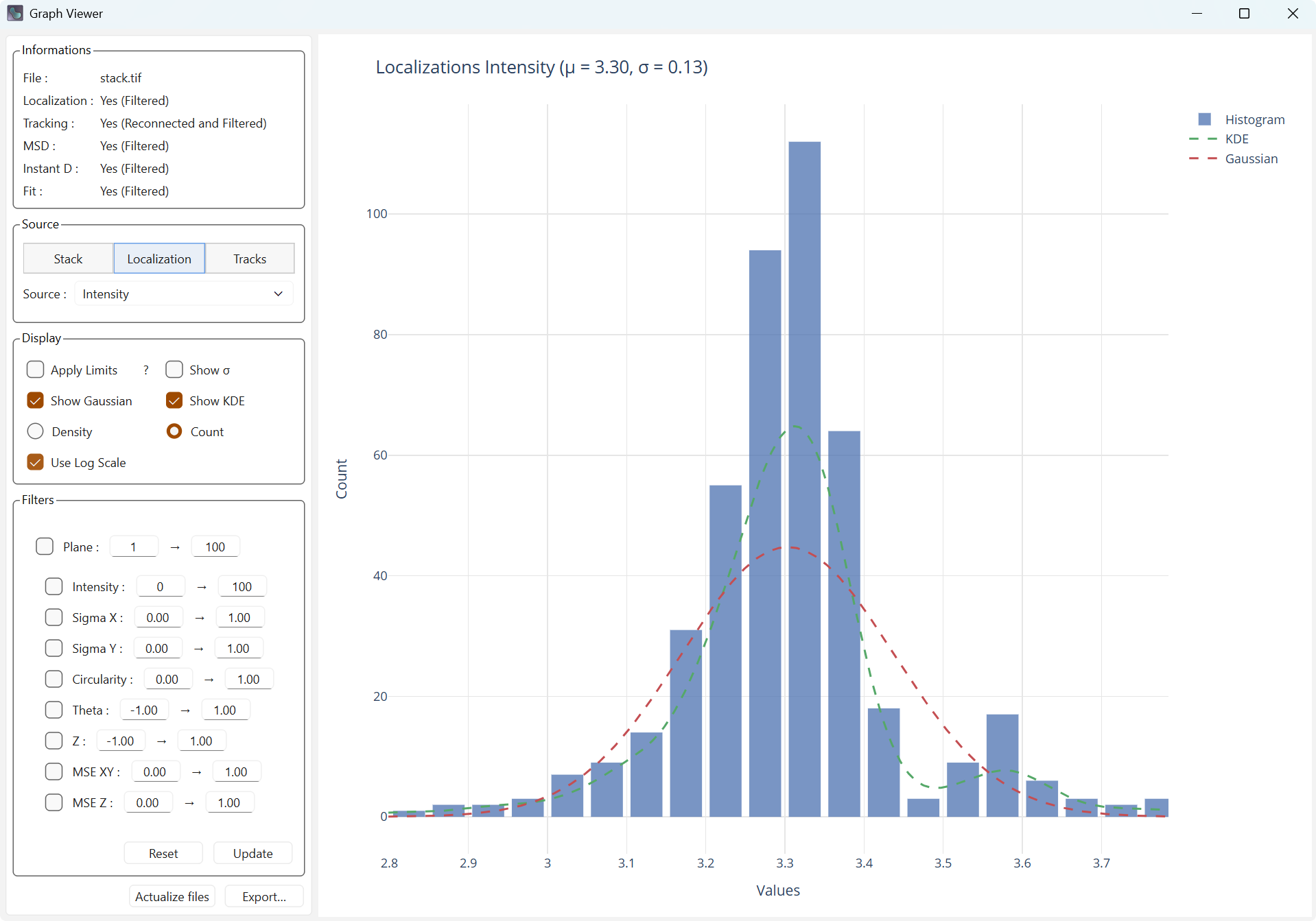 Cette visionneuse est fortement liée à l’interface principale de PALMTracer et ne peut fonctionner à part. Il utilise les éléments calculés dans l’interface principale de façon dynamique.